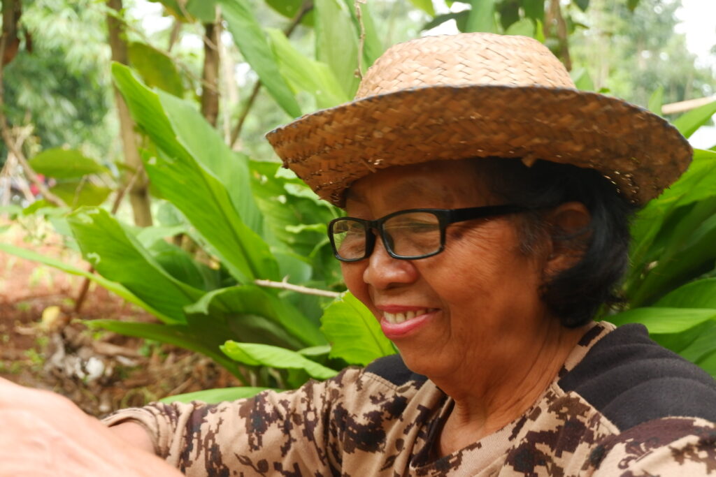 Jika kamu pernah berkunjung ke workshop kami, kemungkinan besar orang pertama yang kamu lihat sedang menyiram tanaman atau sedang berdiri mengaduk rebusan pewarna… ya, ia adalah Bu Ngatmi.