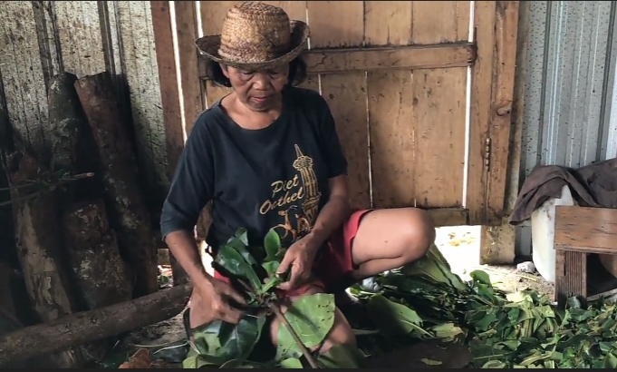 Bu Ngatmi bekerja di bagian paling awal dari proses produksi: menyiapkan bahan pewarna alami. Beliau yang memetik daun, merebus kulit kayu, menyaring, sampai akhirnya siap dipakai untuk membatik atau ecoprint.