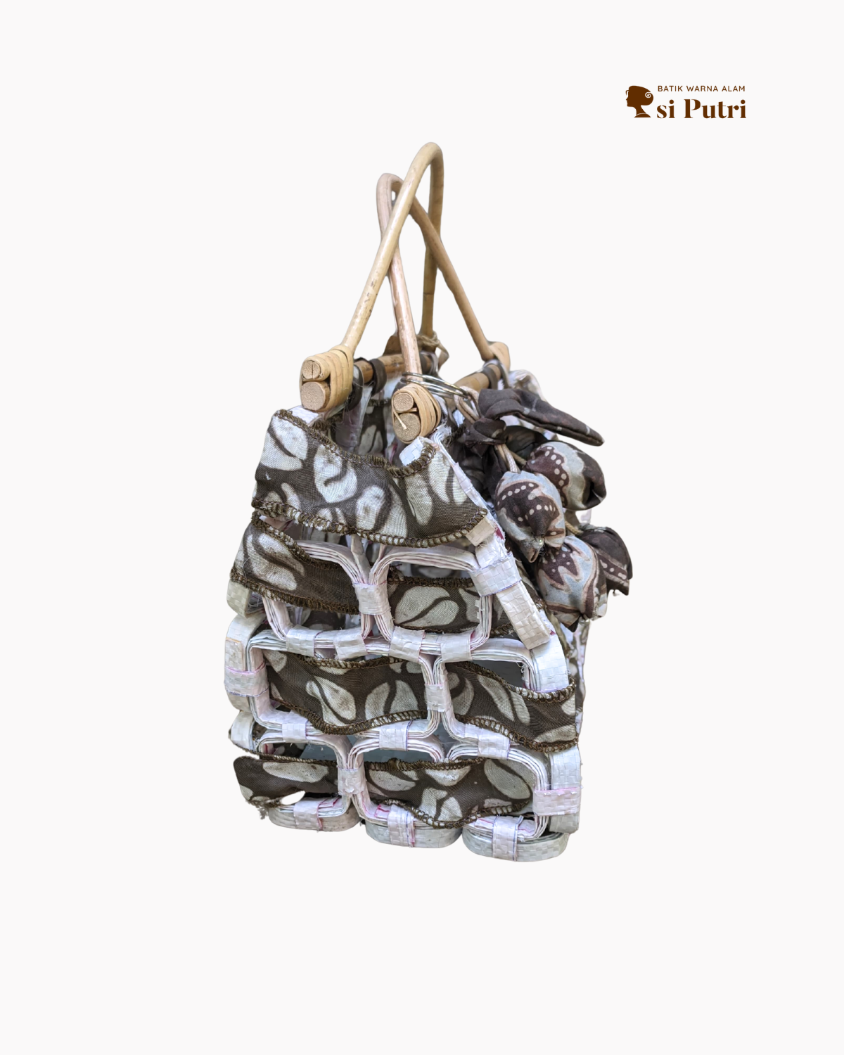 Body: anyaman limbah plastik dengan kombinasi potongan batik perca.